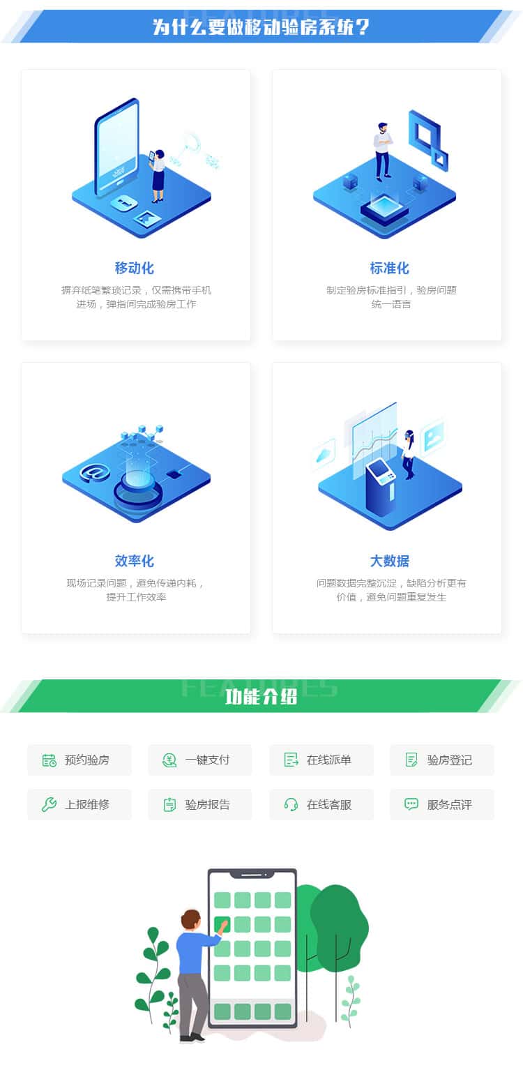 XK移动验房系统,是房地产企业、物业企业及业主用户进行房屋验收和交付的线上移动协作工具,使用场景包括前期楼盘的介入检查、业主的收房验房,系统将验收标准、检验方法、检查记录、户型信息融合在手机中,极大的提高现场记录和修复效率,全面提升楼盘交付质量。